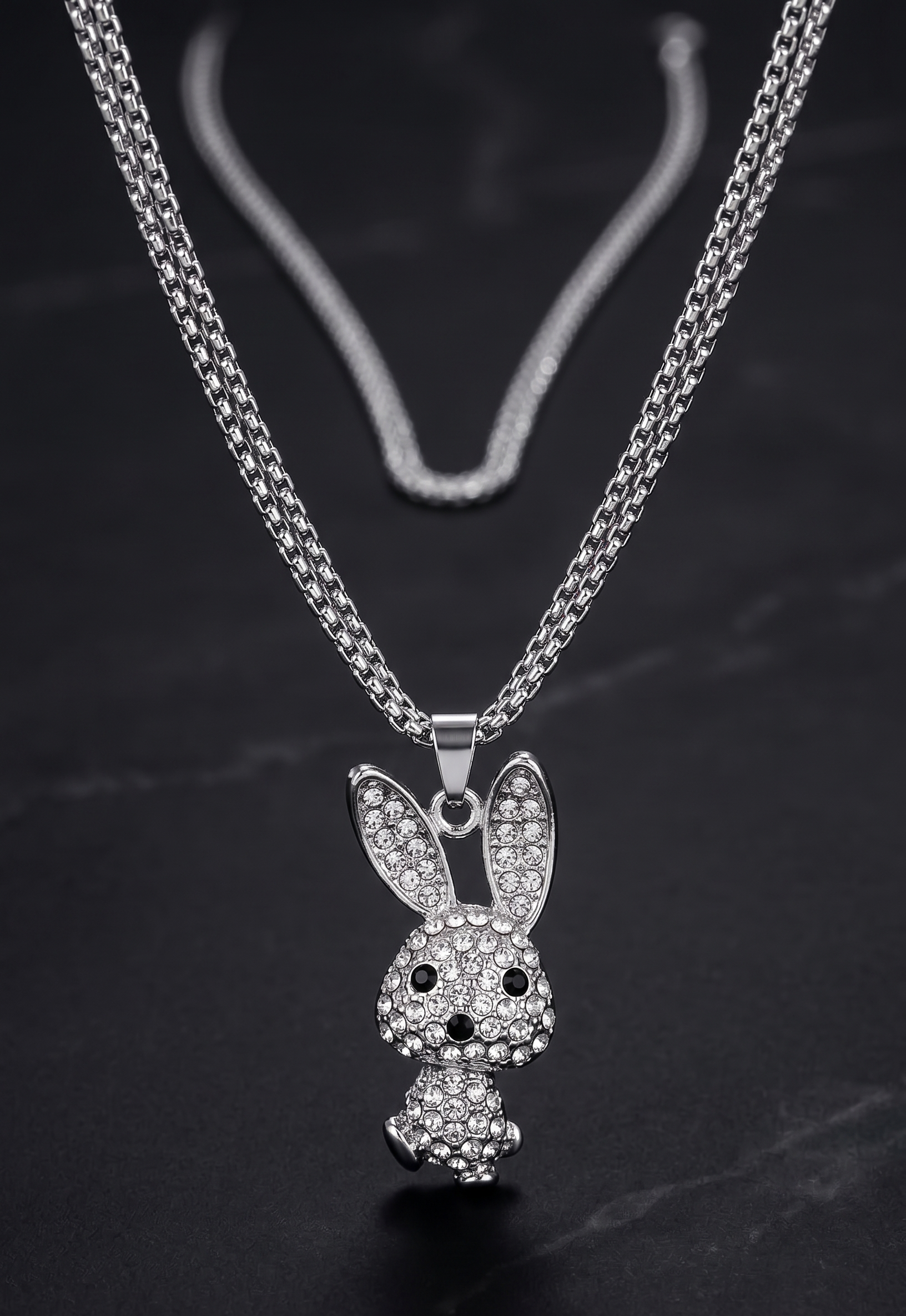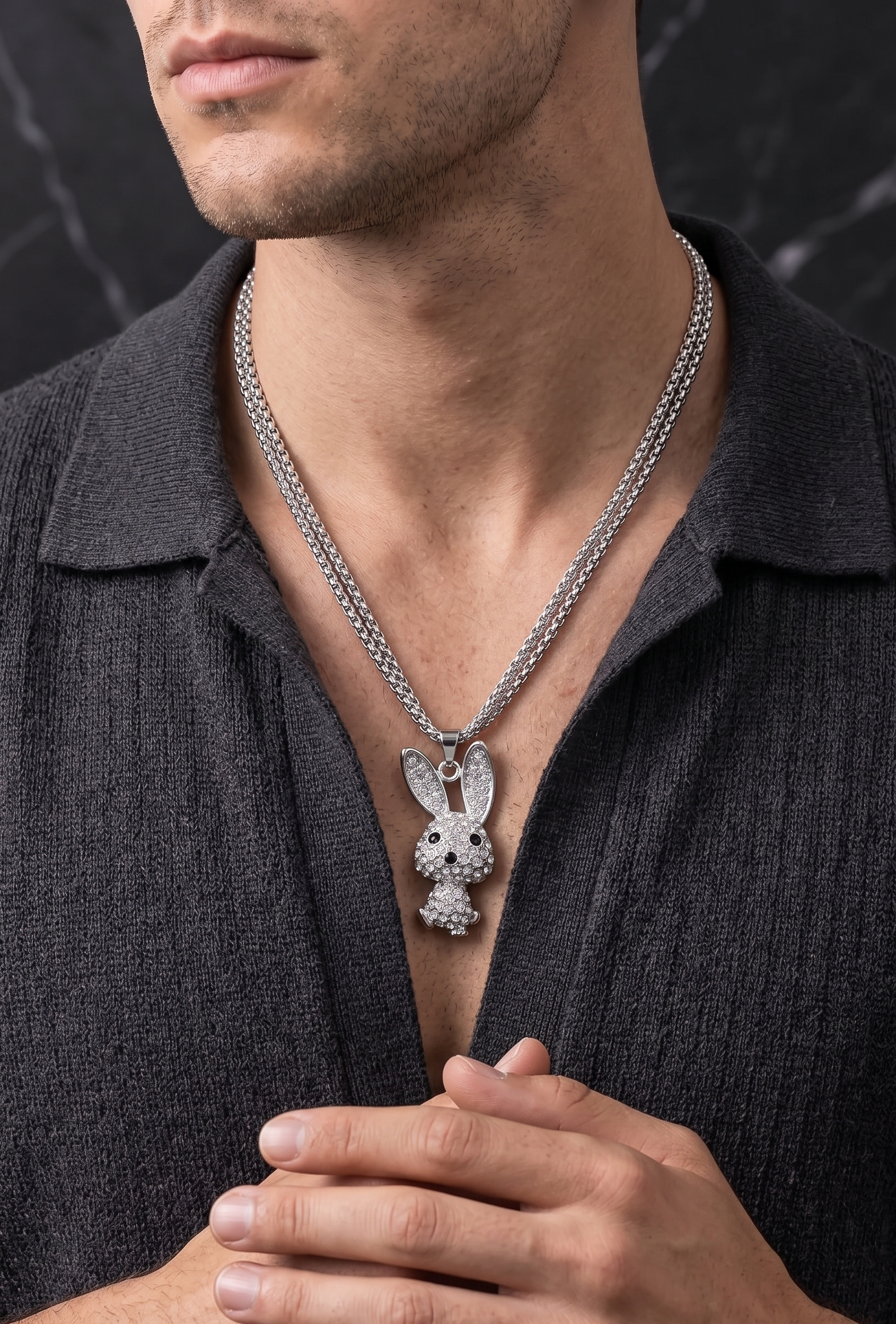This stunning piece features a meticulously detailed bunny silhouette, fully encrusted with high-clarity micro-crystals. Every angle is designed to catch and reflect light, providing that signature “iced-out” look that defines modern urban fashion.